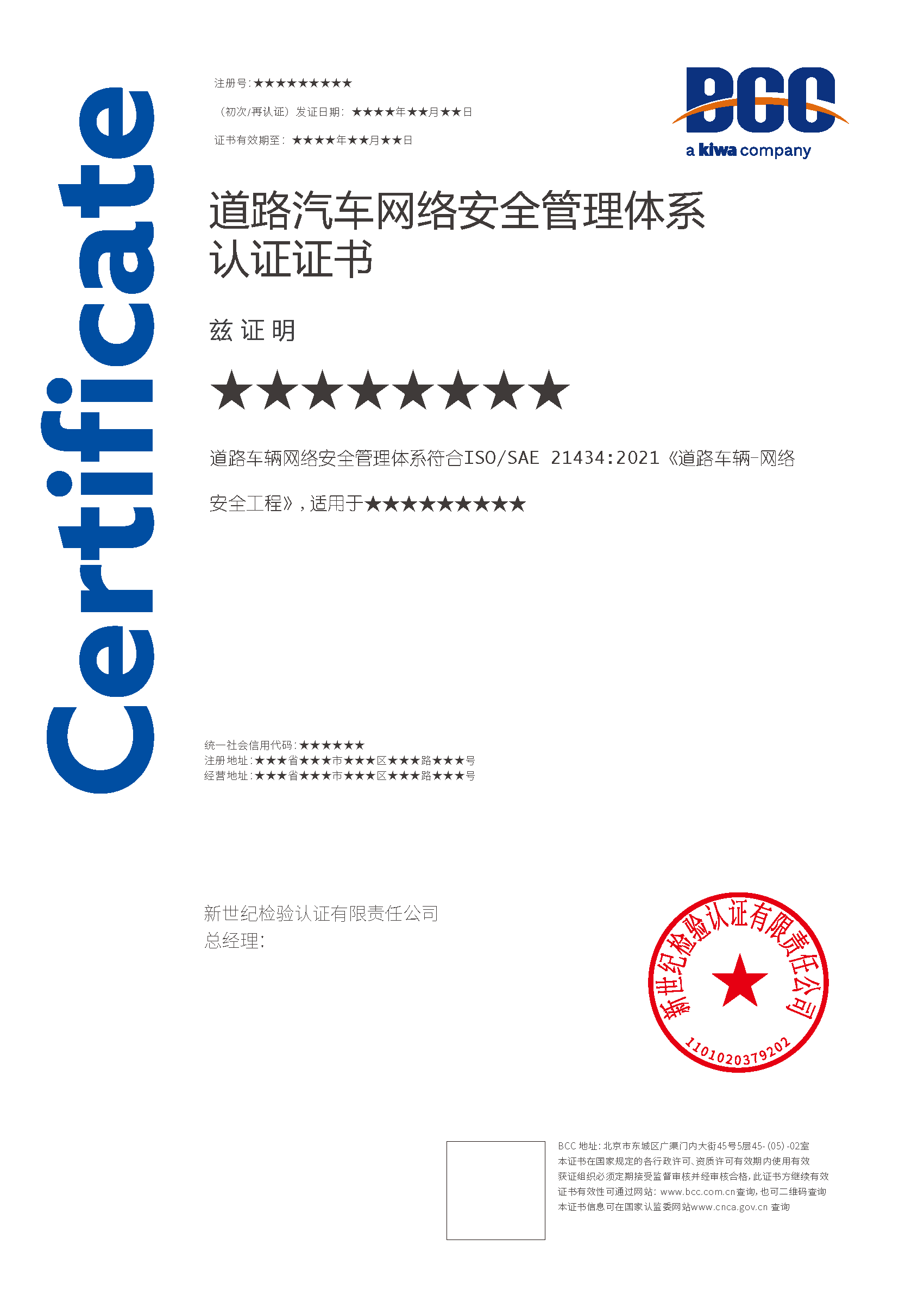 本頁(yè)涉及的認(rèn)證服務(wù)中均有對(duì)應(yīng)的《認(rèn)證實(shí)施規(guī)則》,BCC擁有其最終解釋權(quán)。任何組織及個(gè)人未經(jīng)BCC許可,不得以任何形式全部或部分使用(法律要求除外)認(rèn)證相關(guān)信息。如需獲取相關(guān)實(shí)施規(guī)則請(qǐng)用以下方式聯(lián)系獲取:電話:010-58579316 郵箱:fwjs@kiwa.cn