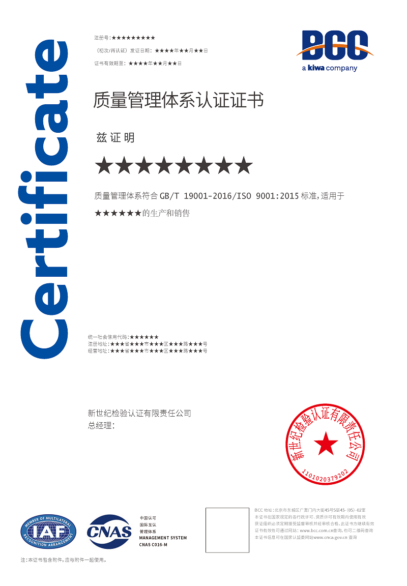 本頁(yè)涉及的認(rèn)證服務(wù)中均有對(duì)應(yīng)的《認(rèn)證實(shí)施規(guī)則》,BCC擁有其最終解釋權(quán)。任何組織及個(gè)人未經(jīng)BCC許可,不得以任何形式全部或部分使用(法律要求除外)認(rèn)證相關(guān)信息。如需獲取相關(guān)實(shí)施規(guī)則請(qǐng)用以下方式聯(lián)系獲取:電話:010-58579316 郵箱:fwjs@kiwa.cn