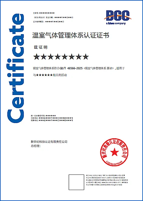 隨著“雙碳”目標(biāo)深入推進,企業(yè)碳管理迫在眉睫。新世紀(jì)檢驗認(rèn)證有限責(zé)任公司(Kiwa BCC)依據(jù)我國首部系統(tǒng)性國標(biāo)《溫室氣體管理體系 要求》(GB/T 46566—2025),為企業(yè)提供從體系建設(shè)到認(rèn)證獲證的全流程服務(wù)。