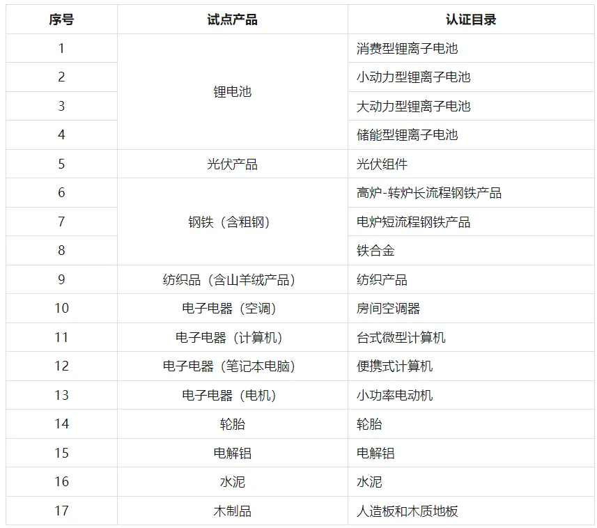 關于印發(fā)《產品碳足跡標識認證試點認證目錄(第一批)》的通知