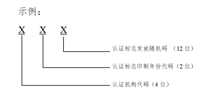 內(nèi)資認(rèn)證機(jī)構(gòu)認(rèn)證證書編號(hào)為該機(jī)構(gòu)批準(zhǔn)號(hào)的3位或4位阿拉伯?dāng)?shù)字流水號(hào);外資認(rèn)證機(jī)構(gòu)認(rèn)證證書編號(hào)為F+該機(jī)構(gòu)批準(zhǔn)號(hào)的2位或3位阿拉伯?dāng)?shù)字流水號(hào)。